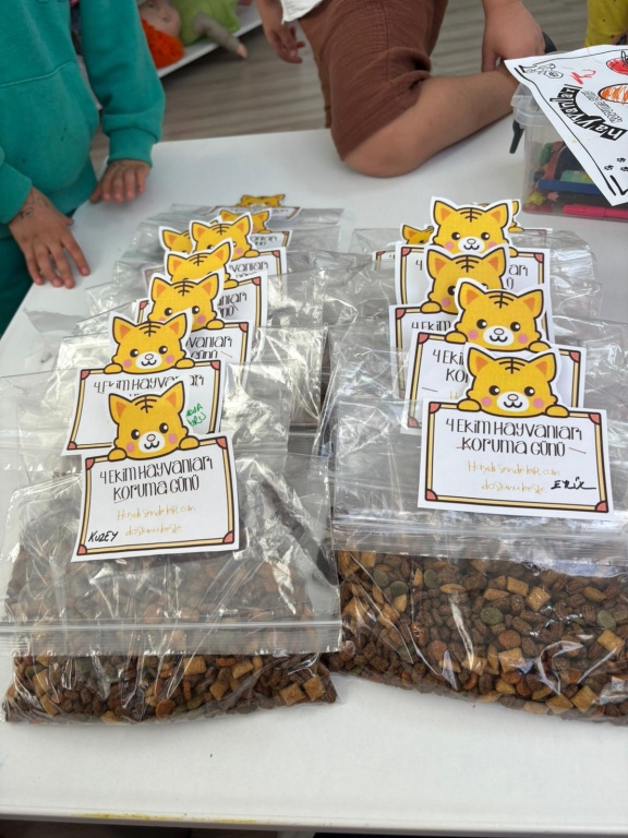 Sınıflarımıza gelen hayvanları sevip besledik, mama kaplarımızı doldurduk, kuş yemliklerimizi hazırladık. Her öğrencimiz evinin yakınındaki hayvanları besleyebilmesi için mama paketleri hazırladı. Bu etkinlik sayesinde minik kalpler, paylaşmanın, yardım etmenin ve canlılara karşı sorumluluk hissetmenin mutluluğunu yaşadılar.